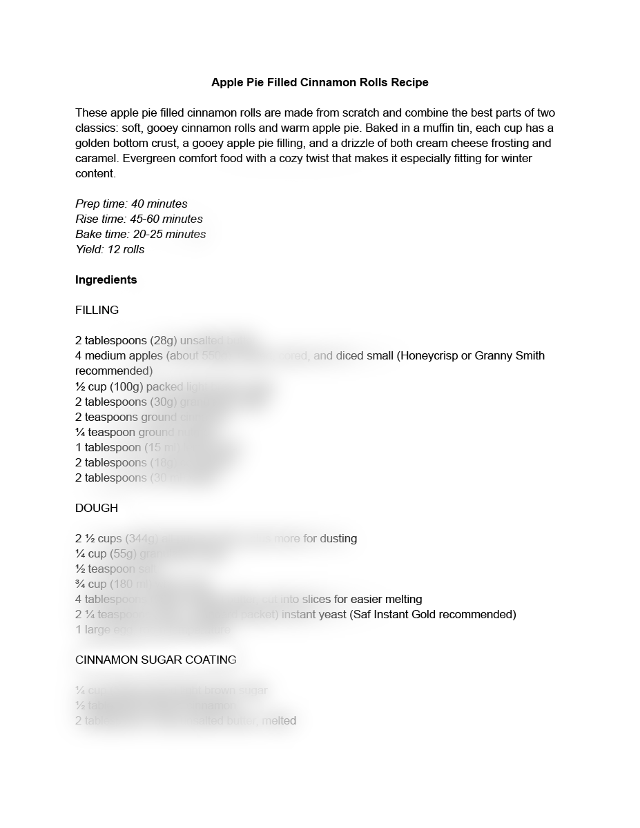 - Recipe & notes Word DOC is formatted for easy copy and paste--no bullets or dashes in front of ingredients or steps!