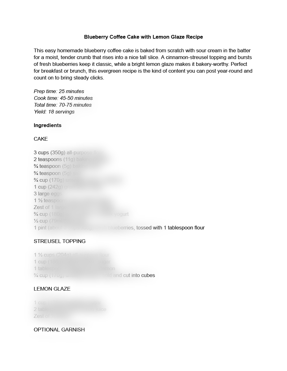Blueberry Coffee Cake with Lemon Glaze Recipe (exclusive)