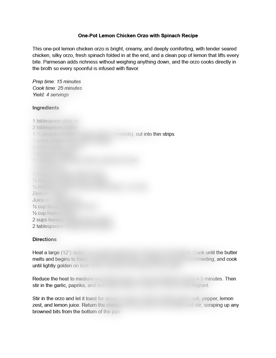 One-Pot Lemon Chicken Orzo with Spinach Recipe (exclusive)